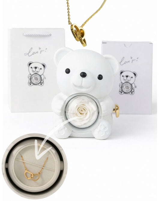 Ours Rose Éternelle et son Collier de Cœur Personnalisé